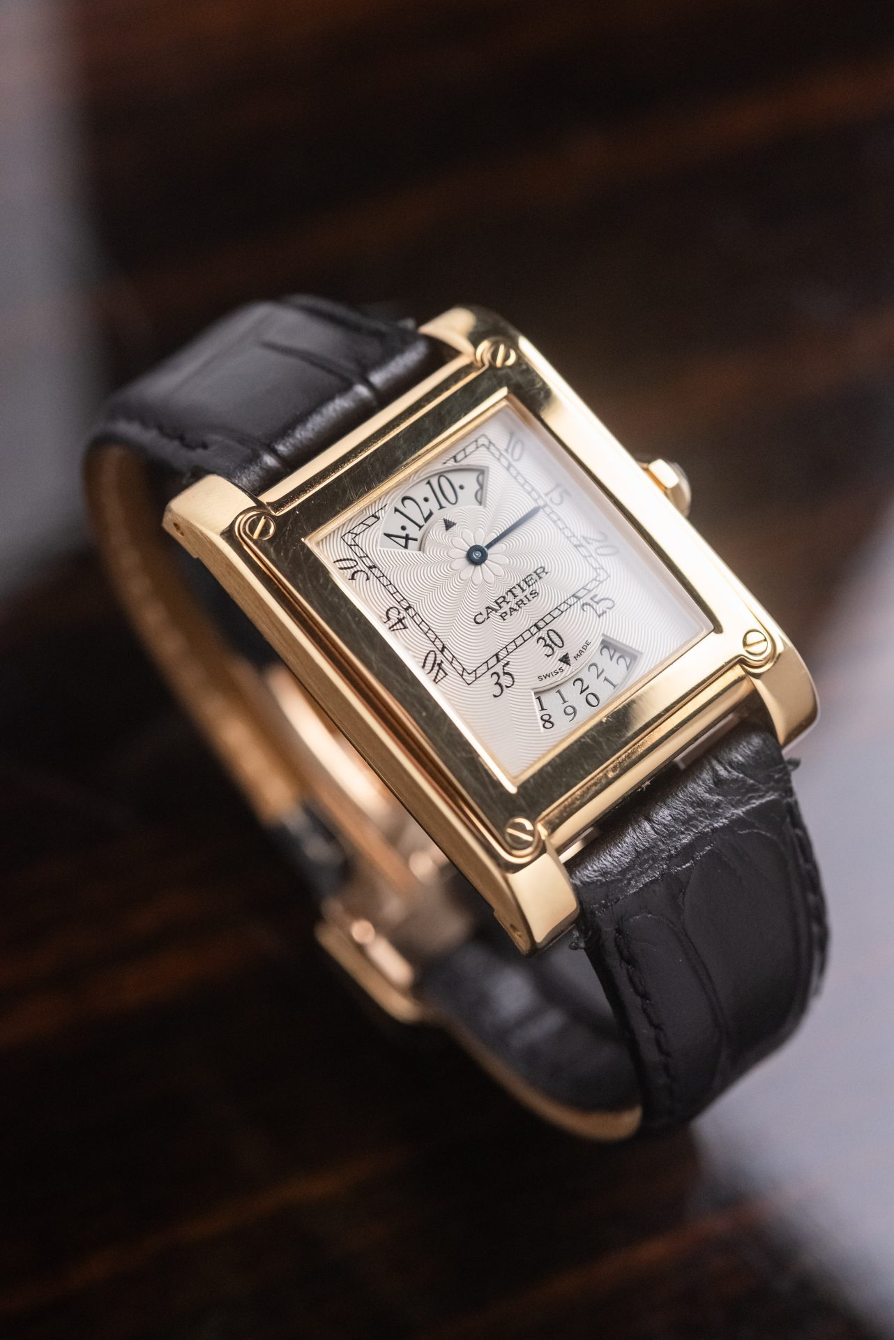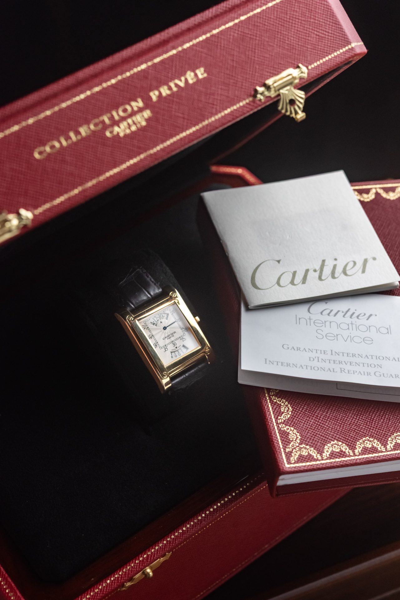 Raffinato Cartier Tank á Vis del 2005, appartenente alla prestigiosa Collection Privée Cartier Paris, espressione massima di alta orologeria della Maison.