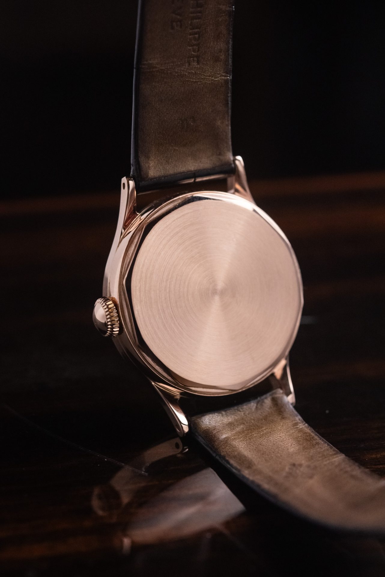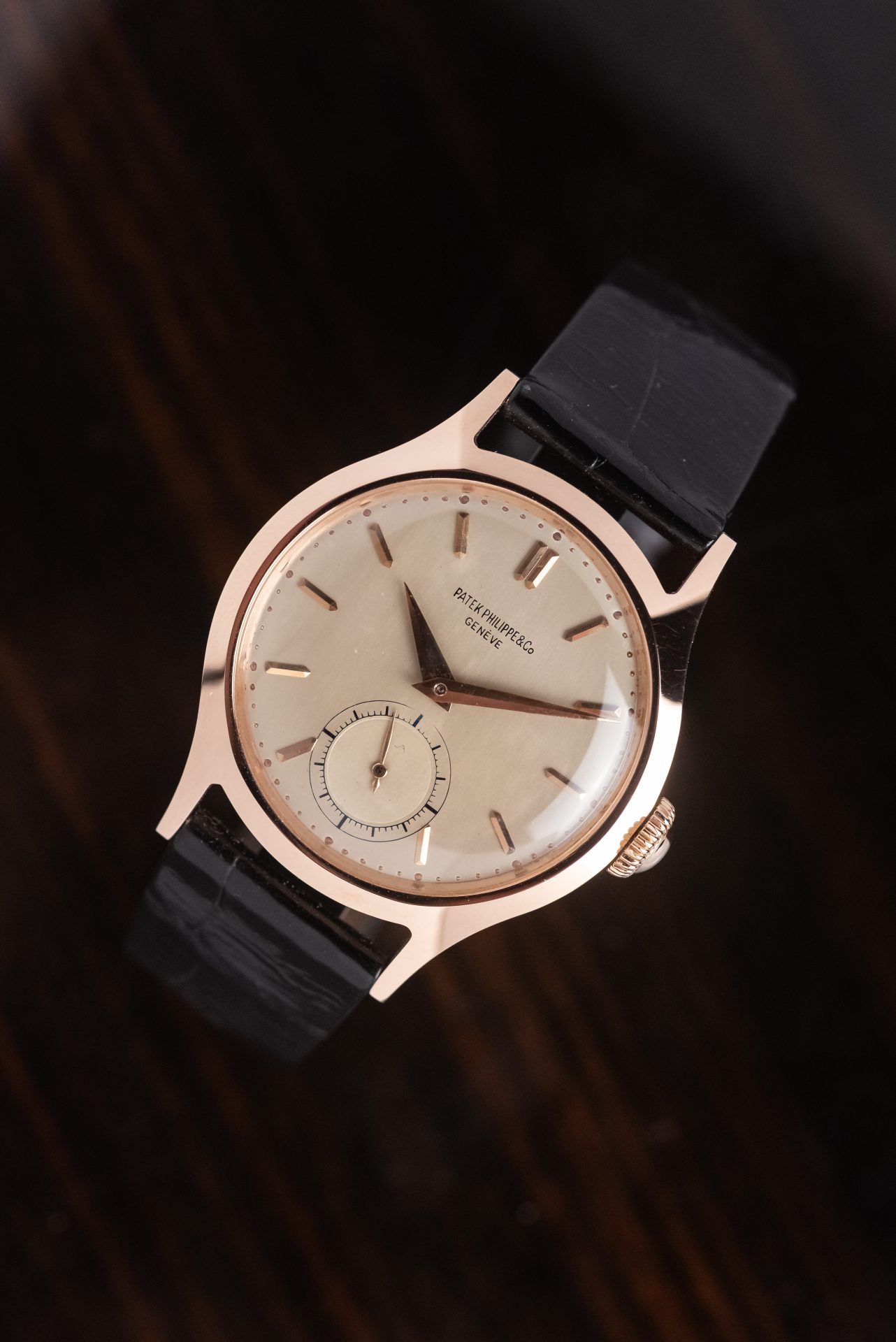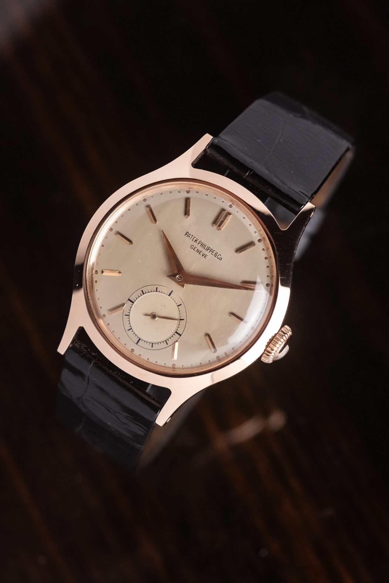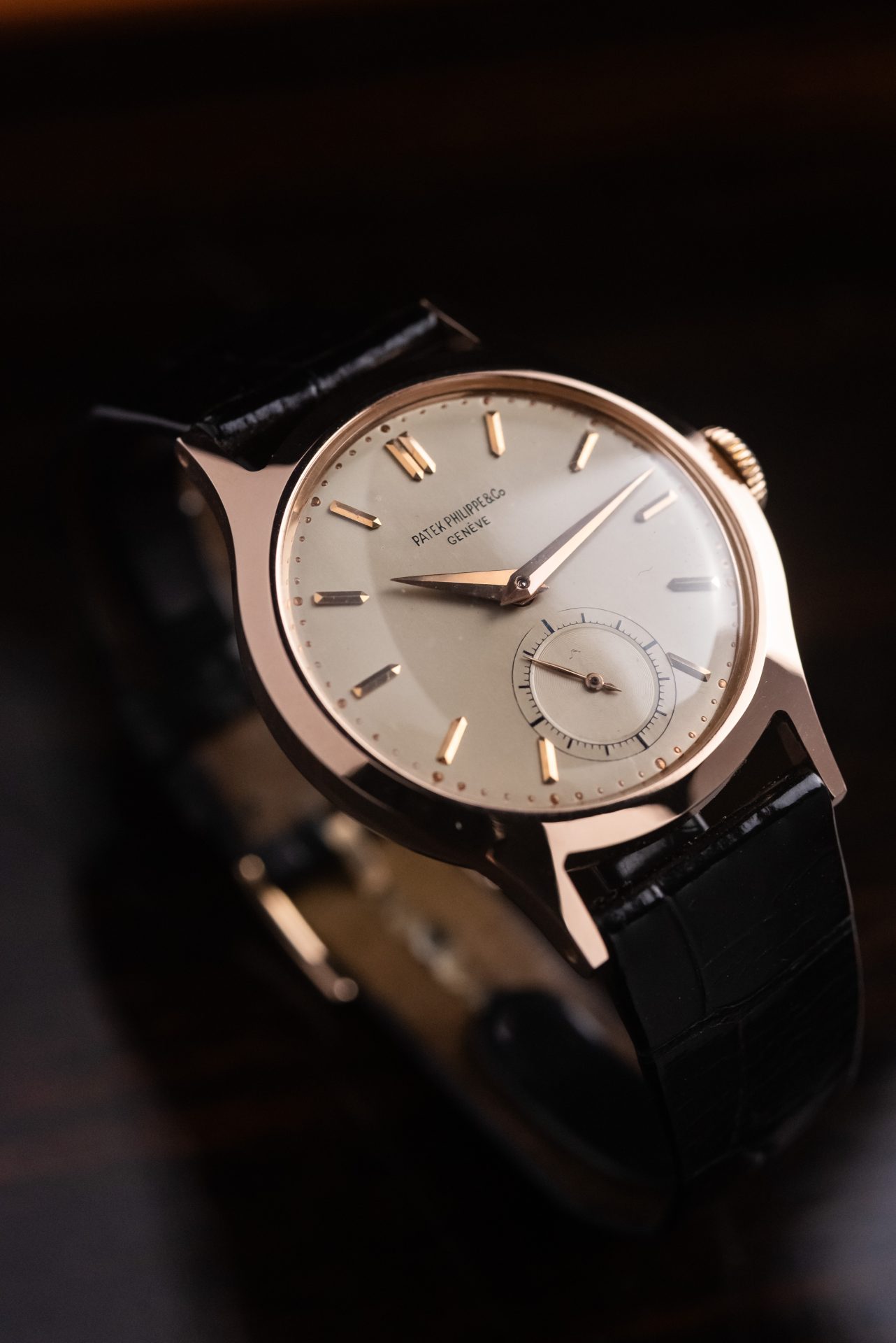 La cassa in oro rosa, dalle proporzioni armoniose e dalla linea sobria ma decisa conservata in straordinarie condizioni, con spigoli ancora ben definiti e superfici che ne testimonia un’eccezionale conservazione nel tempo. Il quadrante originale, elegante e leggibile, è impreziosito da indici applicati applicati e dalla raffinata disposizione dei piccoli secondi a ore 6, dettaglio che dona equilibrio e carattere all’insieme. Le sfere, coerenti per epoca e stile, completano un’estetica senza tempo.
