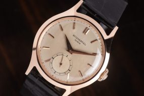 Questo Patek Philippe 565 in oro rosa, datato 1946, rappresenta una delle espressioni più pure ed equilibrate dell’orologeria svizzera. Prodotto in un periodo di grande fermento creativo per la Maison ginevrina, il riferimento 565 è oggi considerato un classico assoluto tra i Patek Philippe a carica manuale con piccoli secondi.