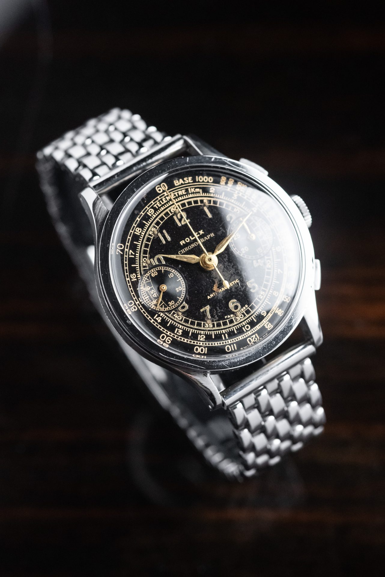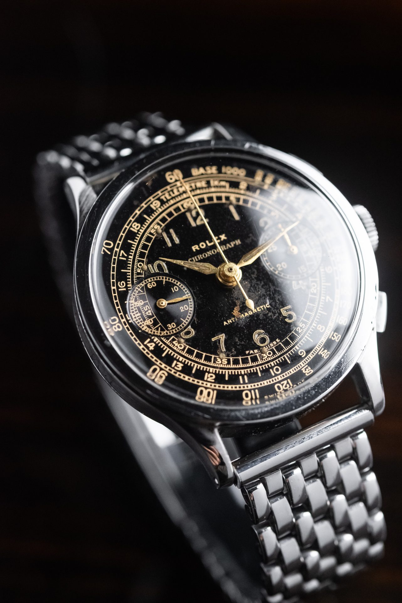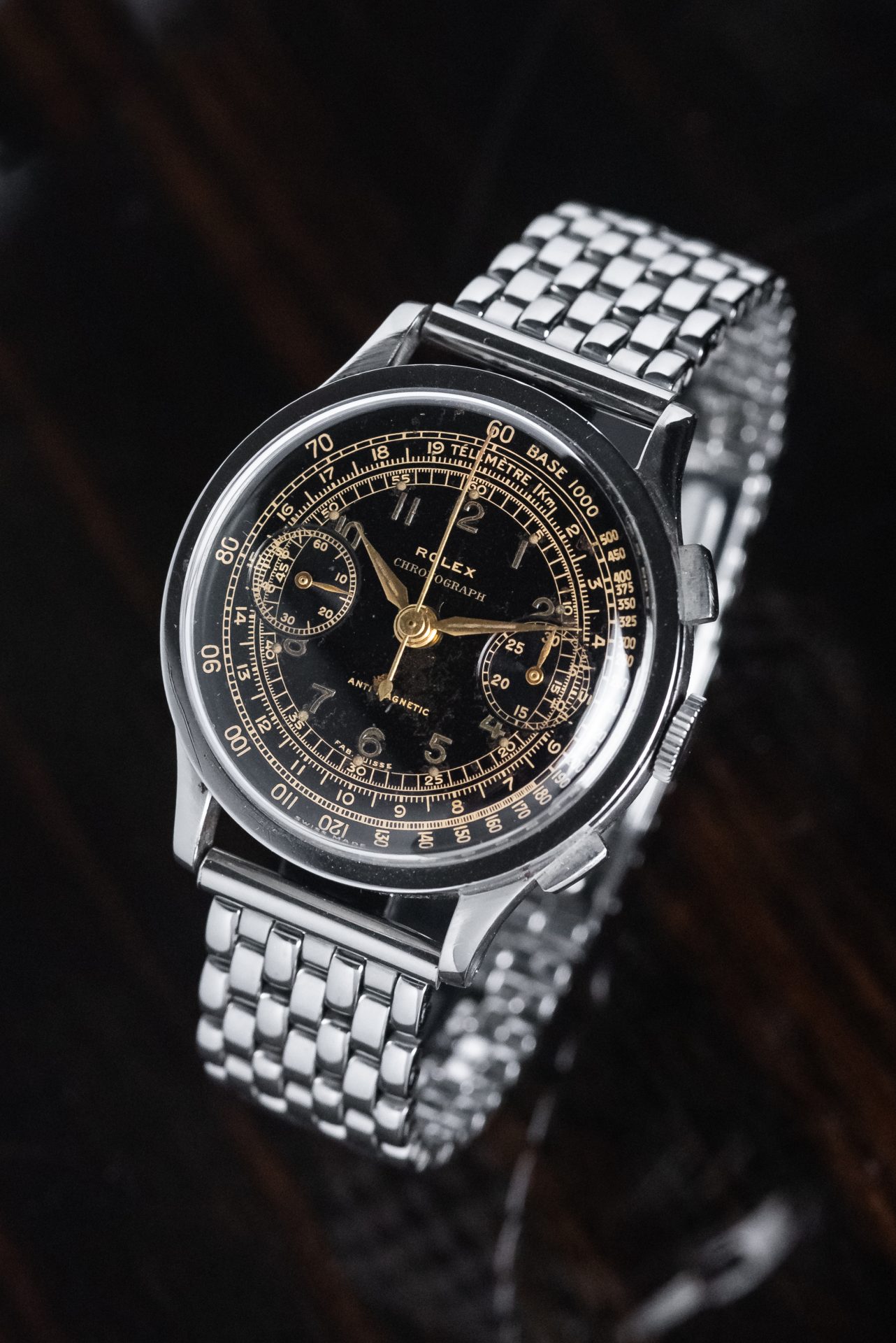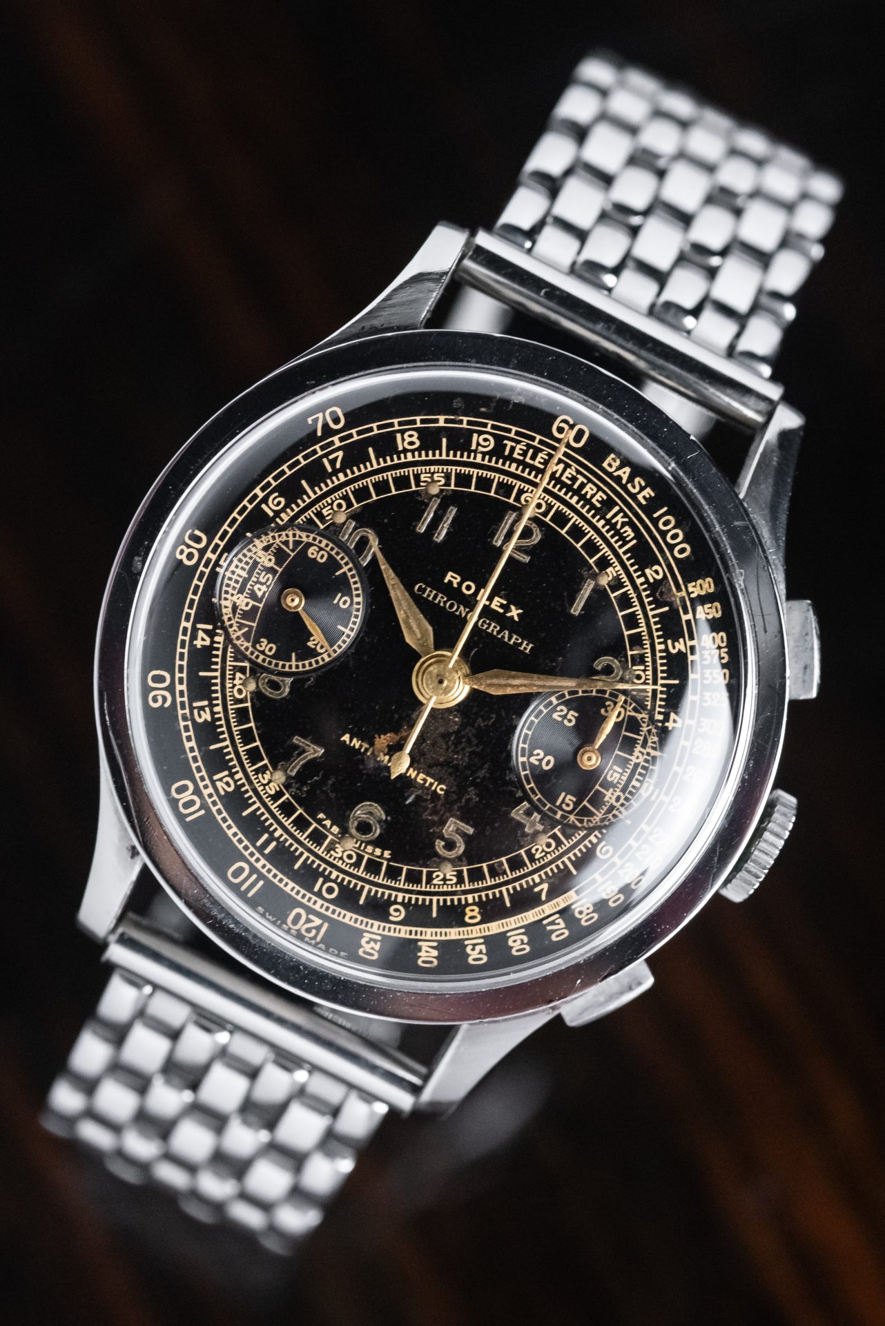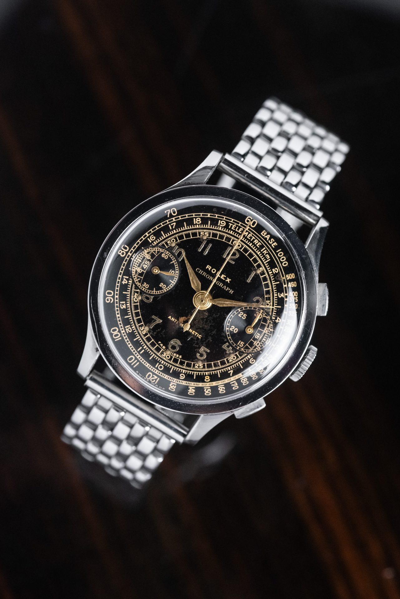 Eleganza senza tempo e fascino d’altri tempi: questo Rolex 2508 è uno dei cronografi più ricercati dagli appassionati. Con il suo quadrante nero gilt ricco di scale tachimetriche e telemetriche incarna alla perfezione lo stile e la tecnica anni 40.
