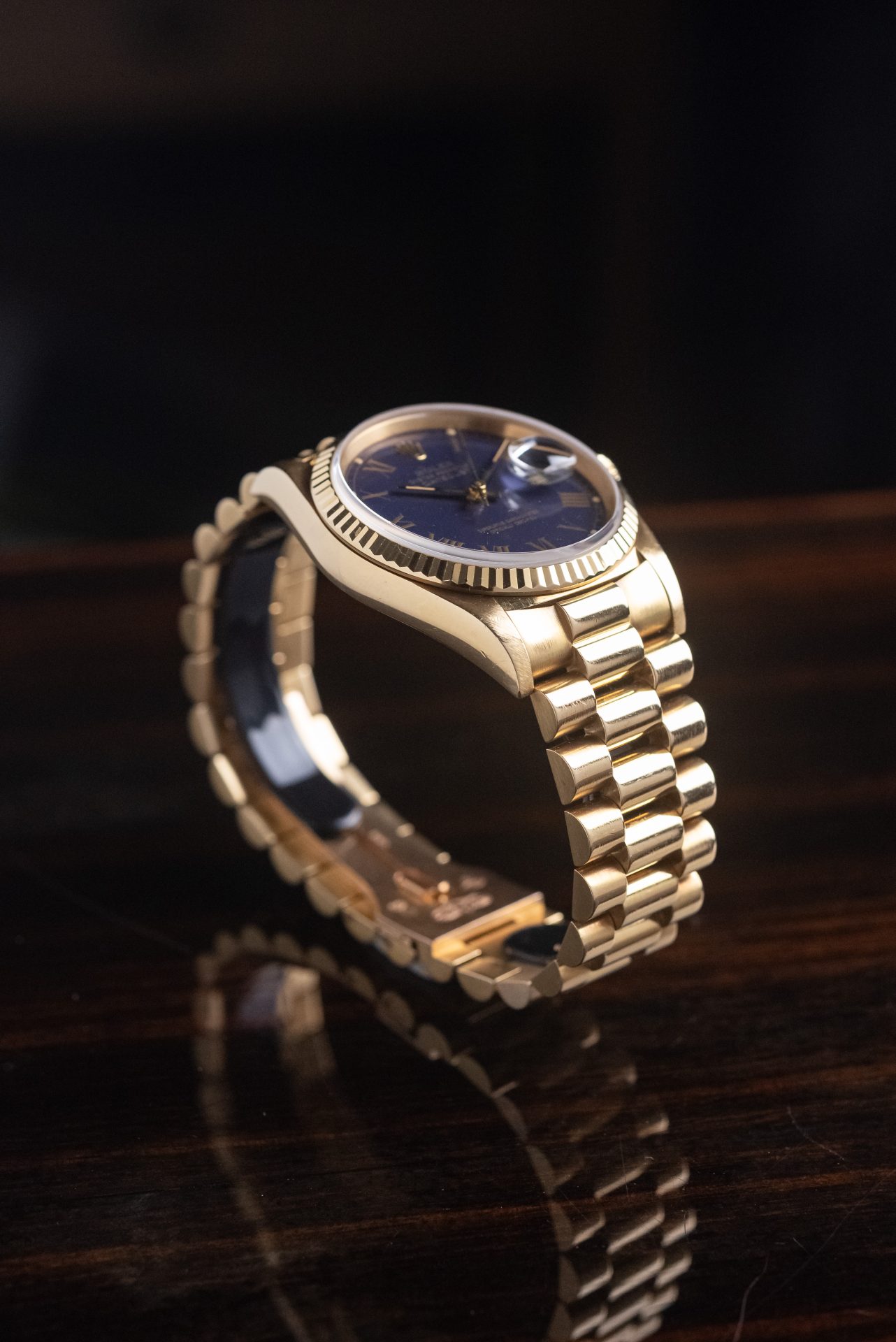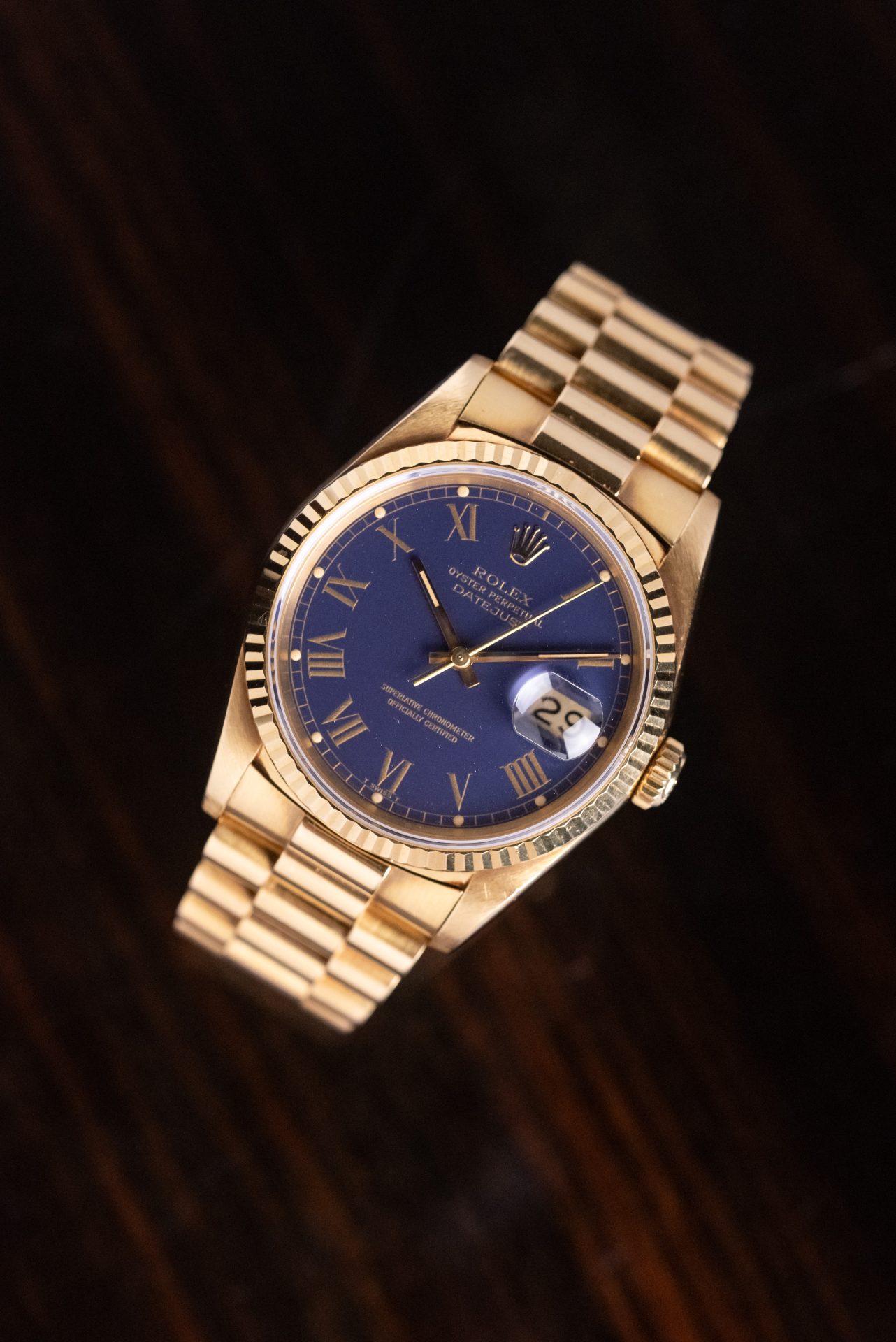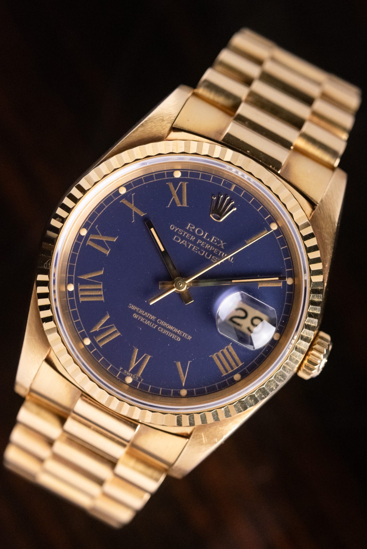 Questo è un Rolex DateJust Ref. 16238, un pezzo iconico degli anni ’80. Realizzato interamente in oro giallo 18K, si distingue per il suo quadrante Buckley con i numeri romani e lancette dorate che ne esaltano l’eleganza classica, questo segnatempo è dotato di tutto il suo corredo originale dell’epoca con scatola, garanzia e scontrino d’acquisto dell’epoca presso la storica gioielleria Rocca di Padova. Un esemplare che racchiude fascino, storia e autenticità, perfetto esempio del prestigio e della raffinatezza firmati Rolex.