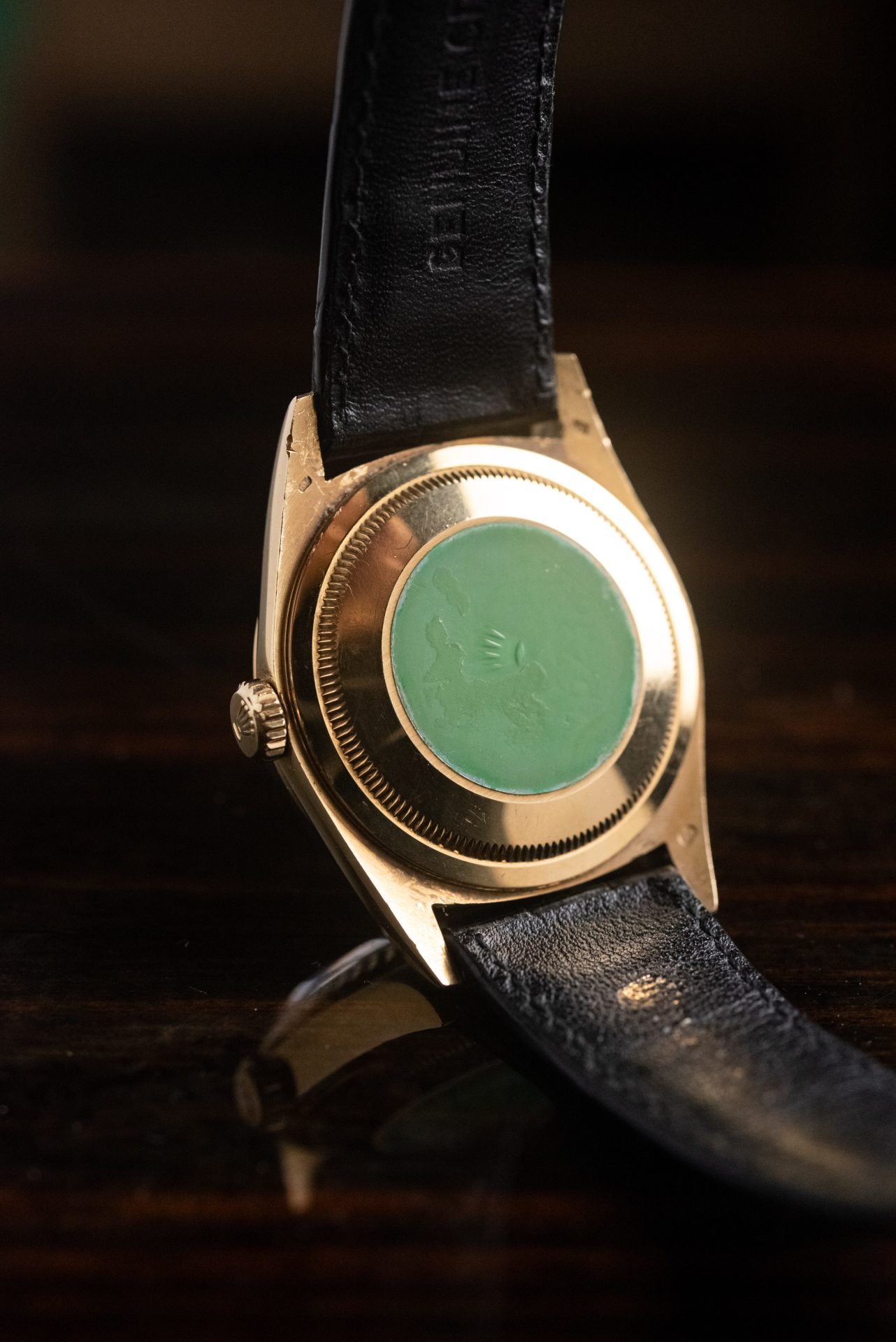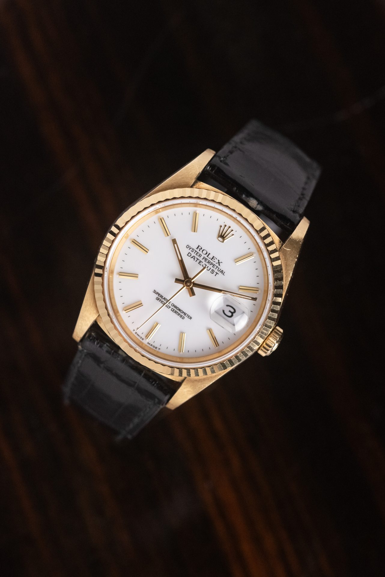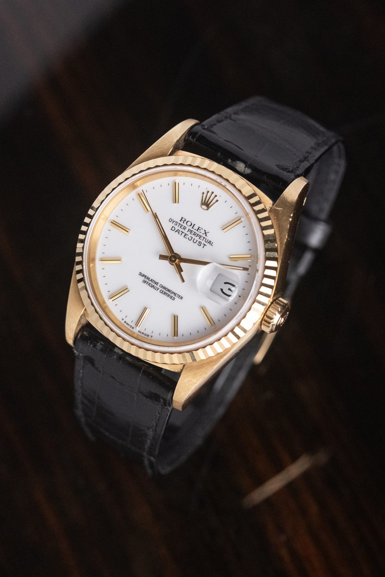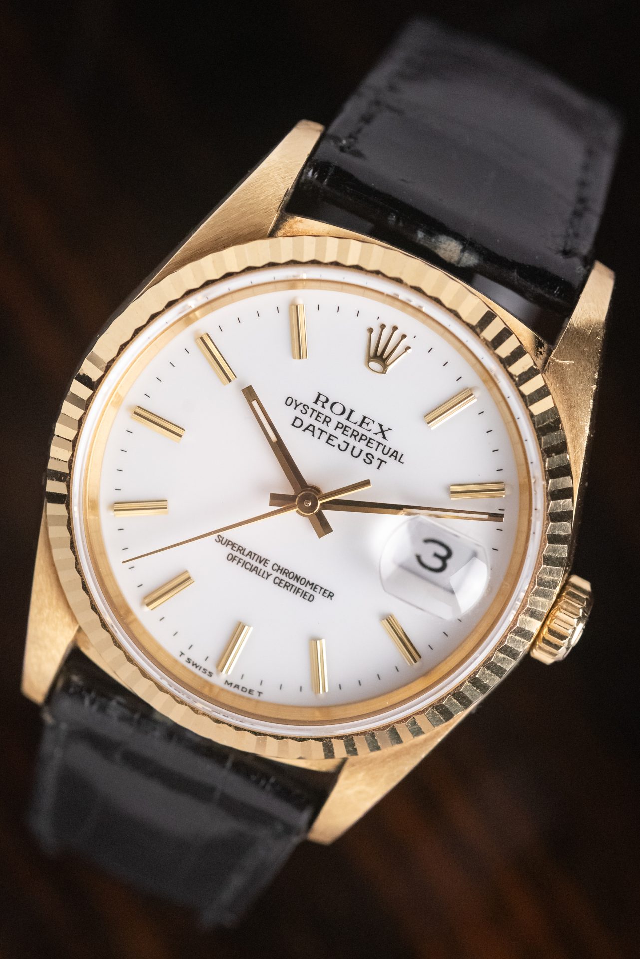 Questo elegante Rolex DateJust Ref. 16238 del 1993 rappresenta una delle versioni più raffinate del classico modello in oro giallo 18K. Il quadrante bianco con indici a bastone dorati e la lunetta zigrinata donano un equilibrio perfetto tra sobrietà e prestigio. L’orologio è Full Set, completo di scatola, garanzia e documenti originali dell’epoca. Particolarità rara e affascinante: conserva ancora il bollino verde di vendita applicato sul fondello, dettaglio che ne testimonia l’originalità e lo stato di conservazione eccellente. Un vero gioiello per intenditori e collezionisti di orologi d’epoca.