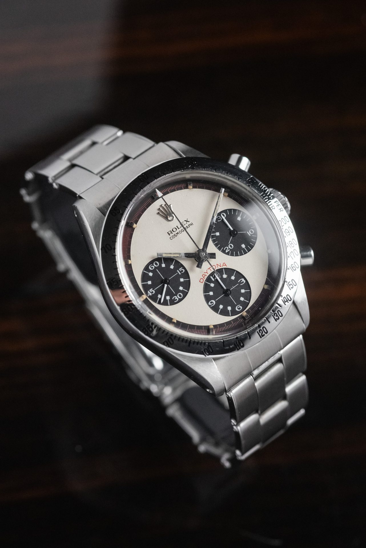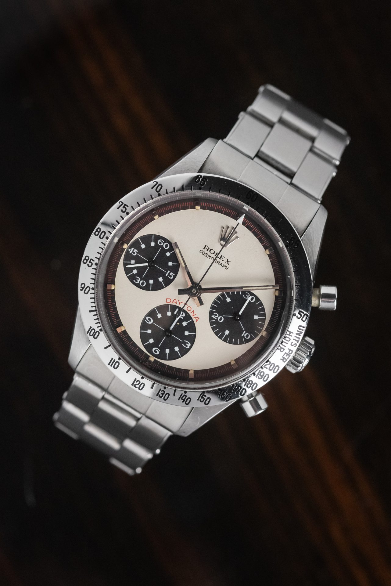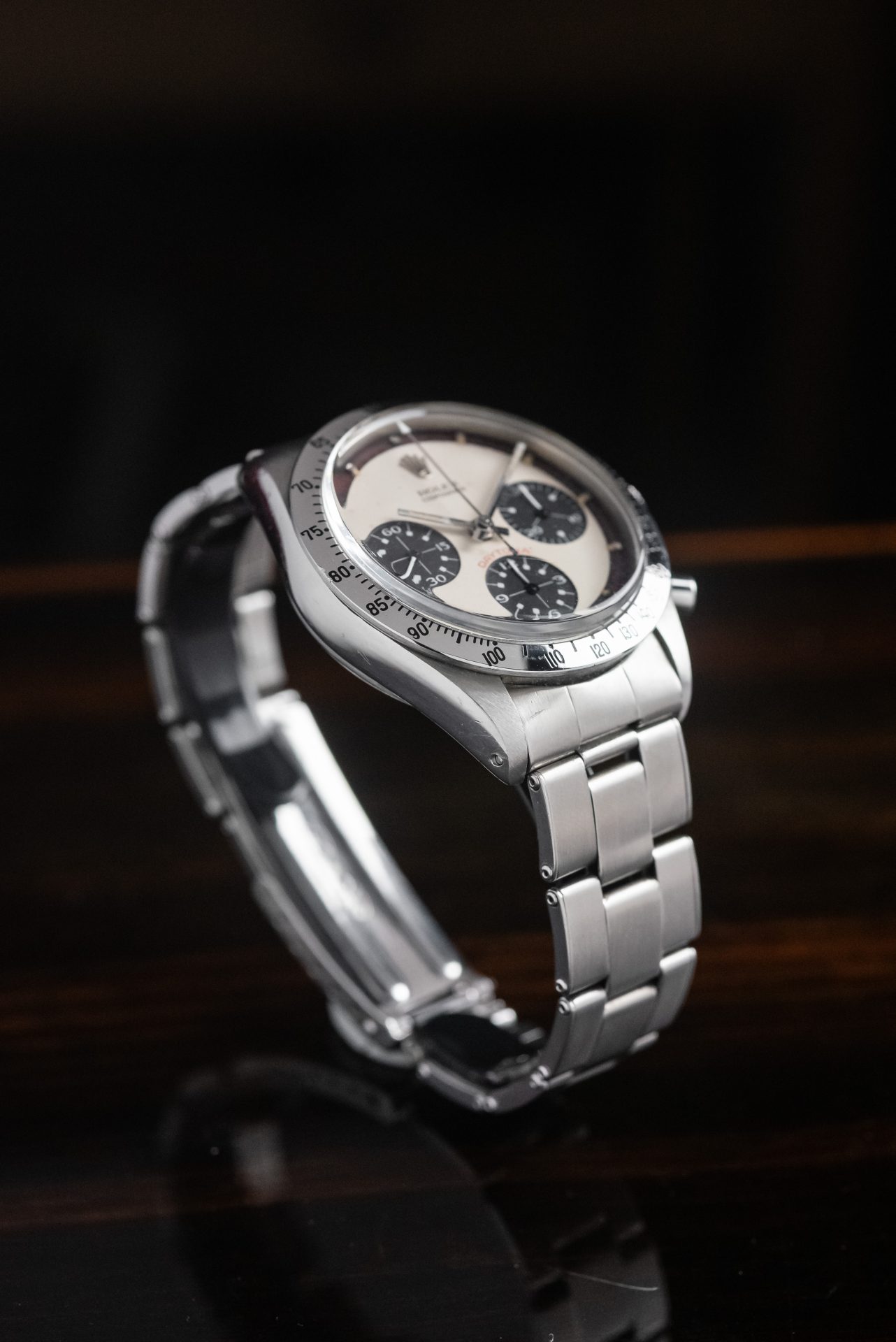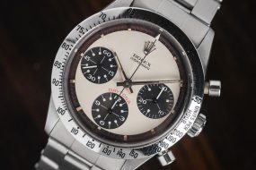 Questo Rolex Daytona 6239 Paul Newman del 1969 non è soltanto un orologio: è un frammento di storia inciso nell’acciaio. Il suo quadrante esotico, con i contatori neri a contrasto racconta un’epoca in cui la velocità, le corse e lo stile si fondevano in un’eleganza senza tempo. Ogni dettaglio, dalla scala tachimetrica incisa sulla lunetta alle lancette affilate, trasmette equilibrio e carattere, mentre la patina naturale del tempo ne amplifica il fascino autentico. É un’icona rara, nata per misurare i secondi in pista e diventata immortale al polso dei collezionisti: un simbolo assoluto di passione, precisione e bellezza.