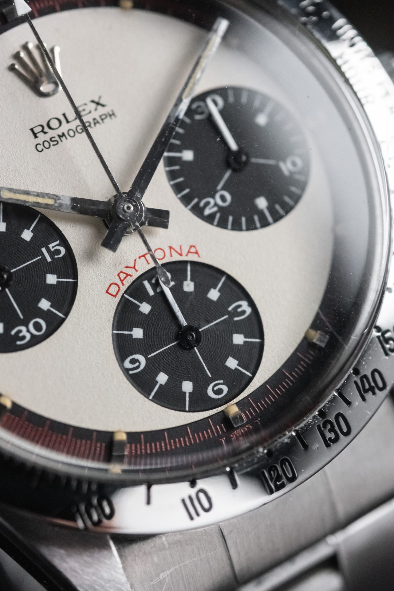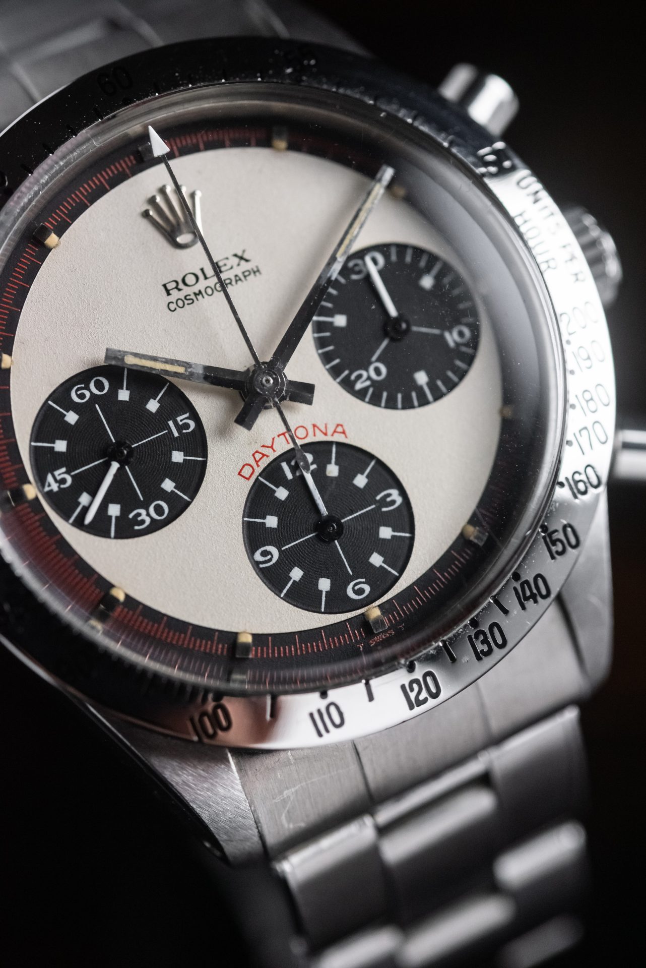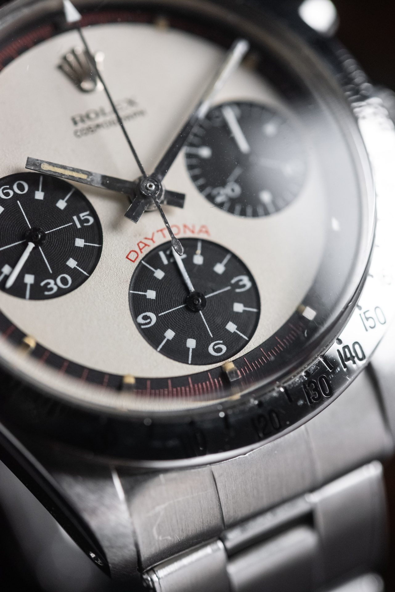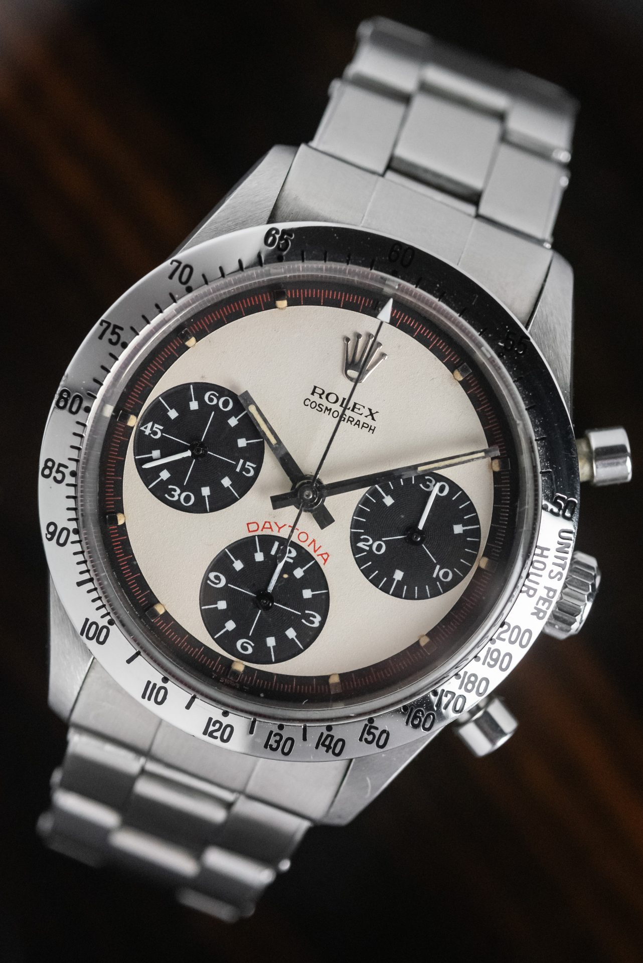 Questo Rolex Daytona 6239 Paul Newman del 1969 non è soltanto un orologio: è un frammento di storia inciso nell’acciaio. Il suo quadrante esotico, con i contatori neri a contrasto racconta un’epoca in cui la velocità, le corse e lo stile si fondevano in un’eleganza senza tempo. Ogni dettaglio, dalla scala tachimetrica incisa sulla lunetta alle lancette affilate, trasmette equilibrio e carattere, mentre la patina naturale del tempo ne amplifica il fascino autentico. É un’icona rara, nata per misurare i secondi in pista e diventata immortale al polso dei collezionisti: un simbolo assoluto di passione, precisione e bellezza.