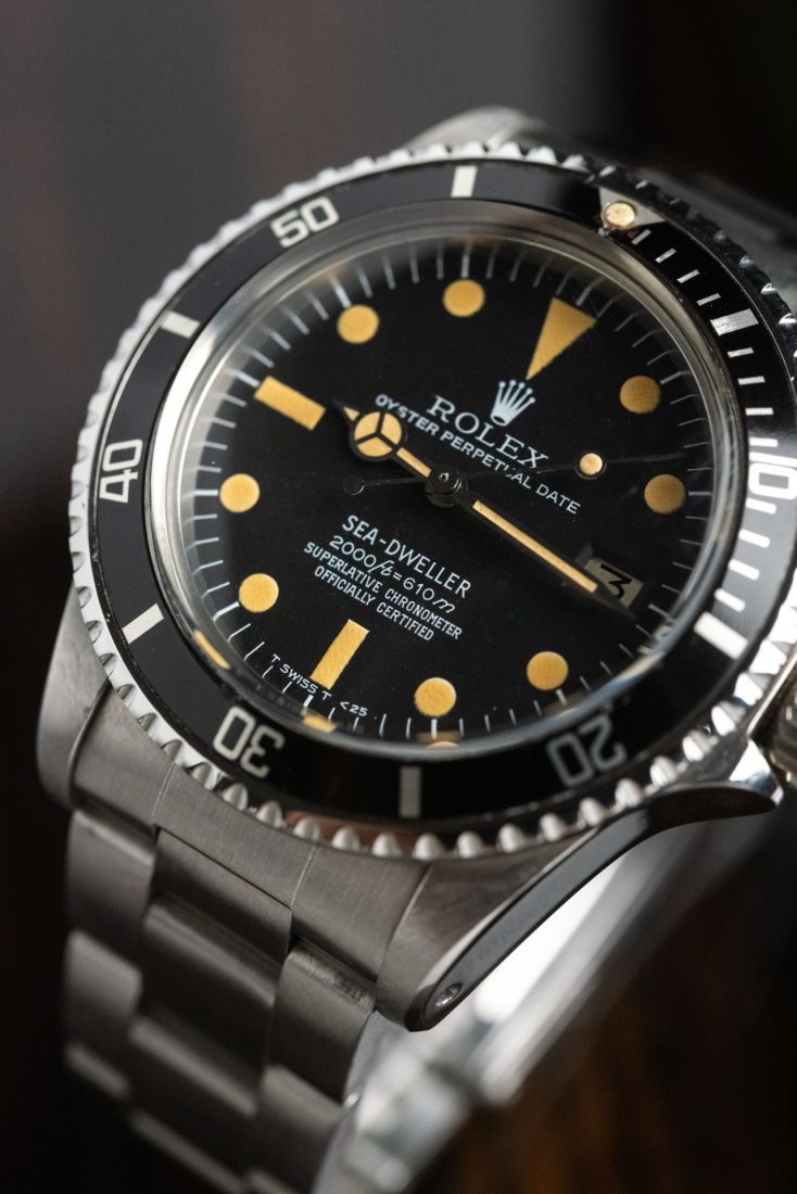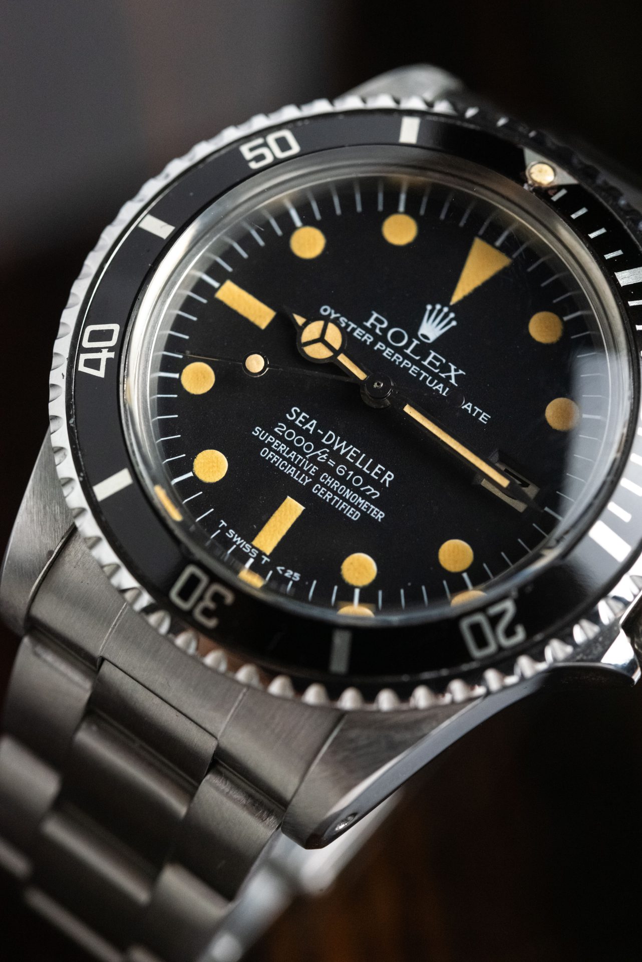 Rolex Sea-Dweller vetro plexi in acciaio Ref. 1665 Ser. 5.7x Quadrante nero con indici virati, ghiera nera in alluminio, cassa e bracciale Oyster in perfette condizioni Meccanica con carica automatica cal. 1570